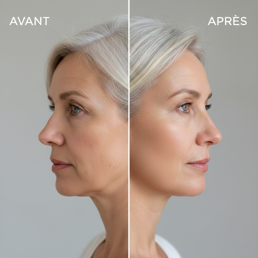 - Cible : Rides, perte de fermeté et manque d’éclat.